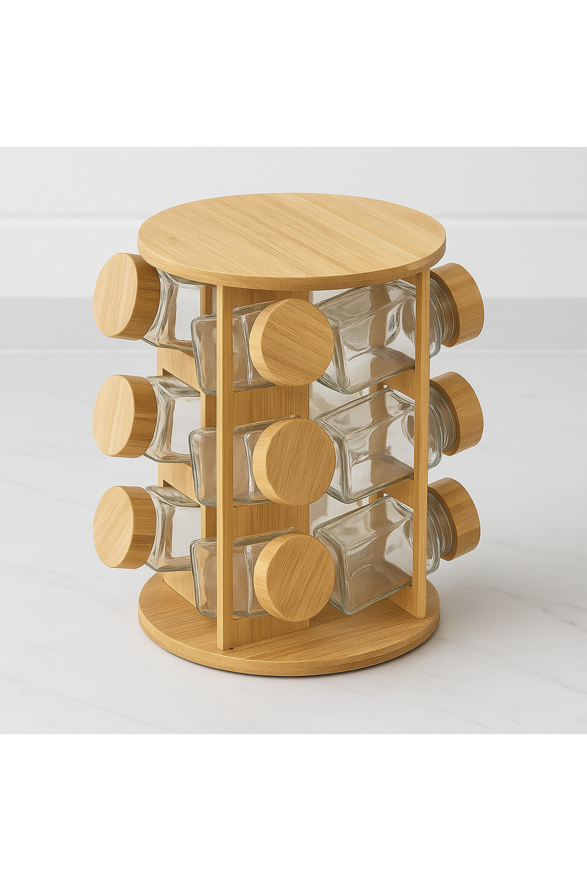 DrBambu Bambu Dönerli 12’li Cam Baharatlık Seti