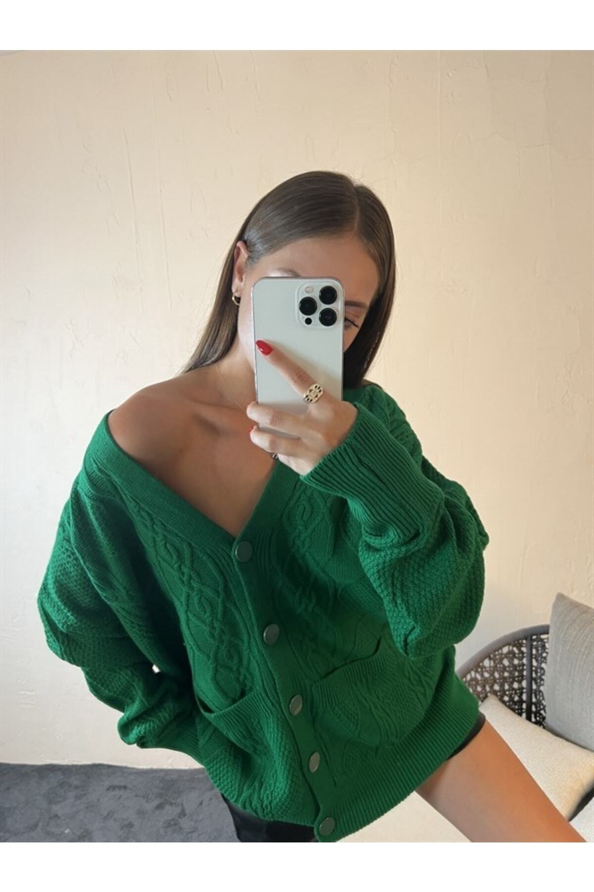 Ece Triko Cepli Düğmeli Hırka Yeşil Özellikleri