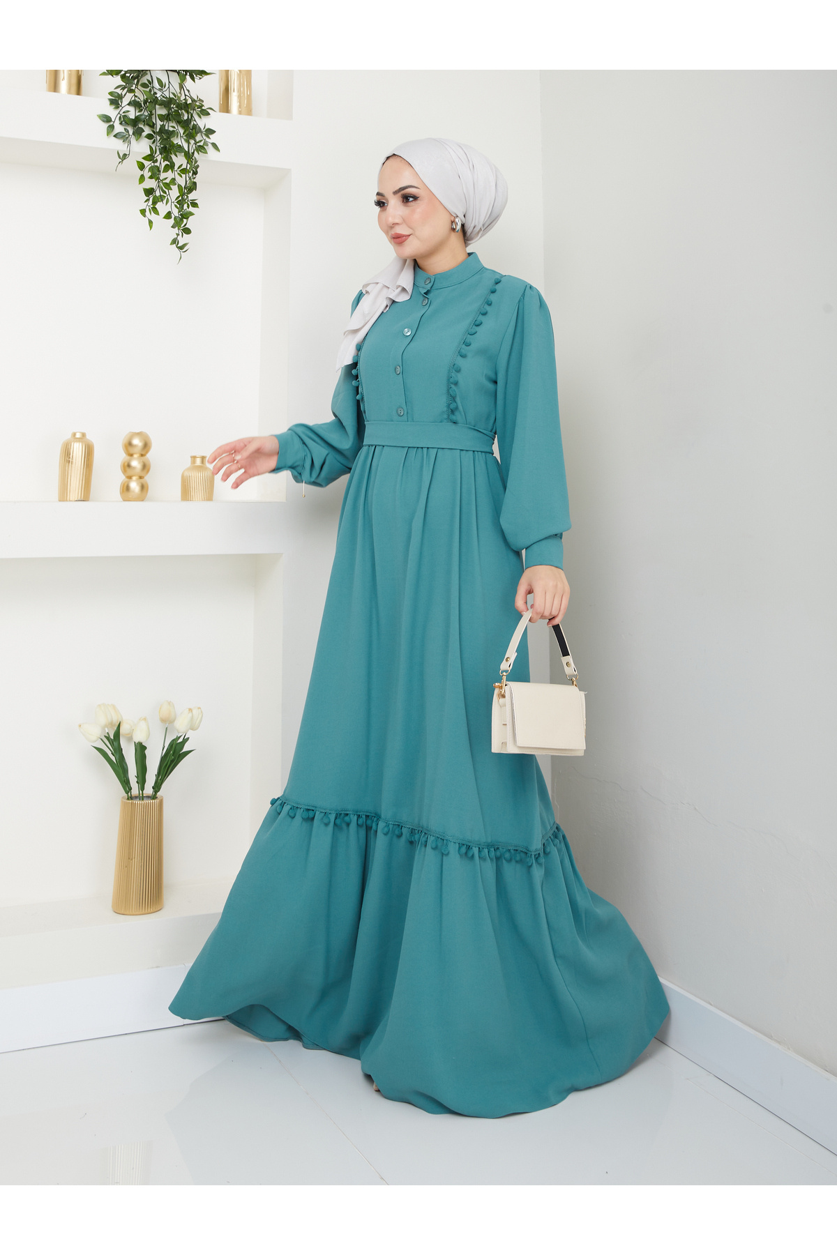EFSUN MODA KADIN TESETTÜR DANTELLİ ŞERİT ELBİSE MİNT Özellikleri