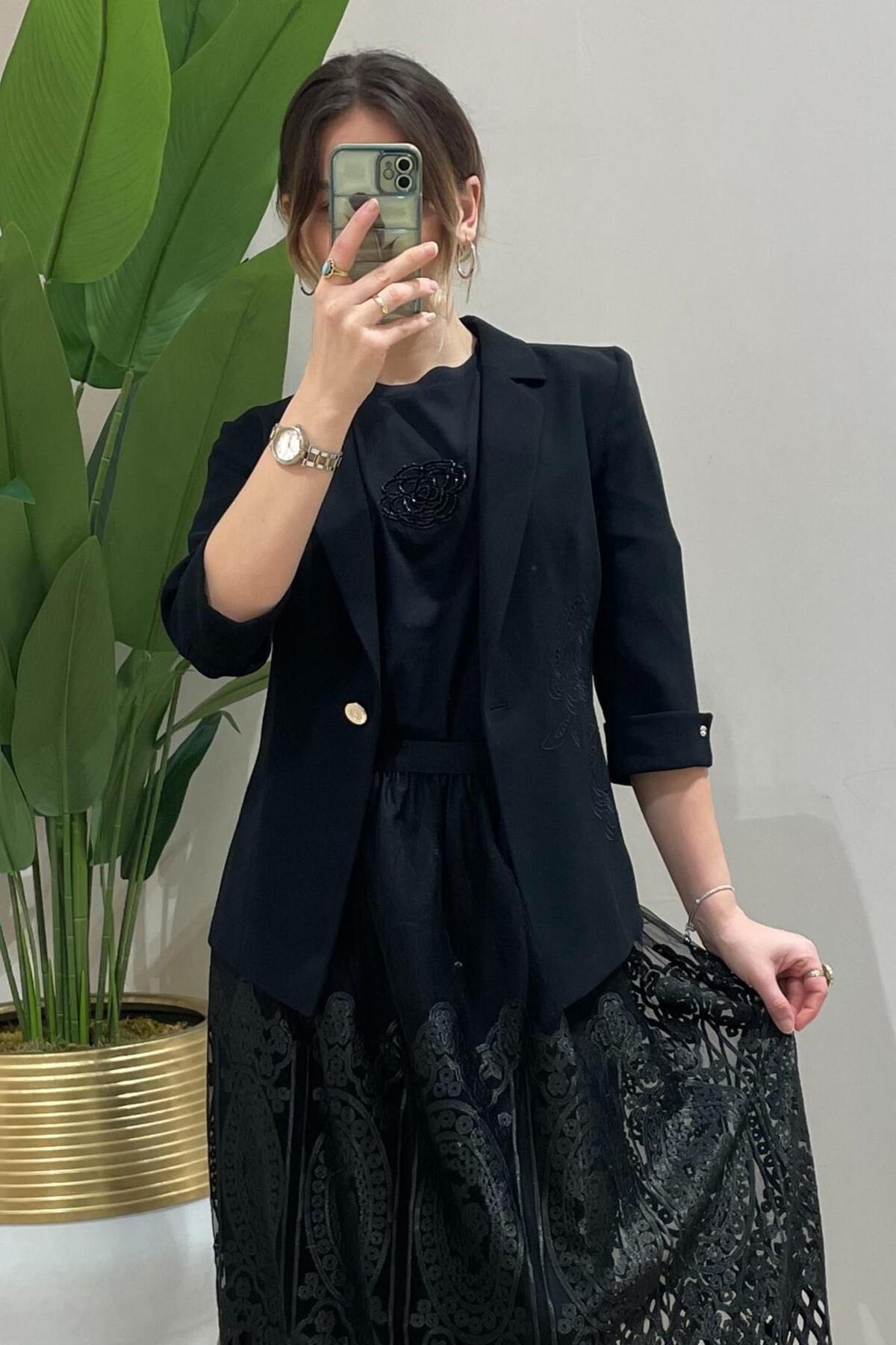 Ekol Gül İşlemeli Tek Düğme Ceket Özellikleri