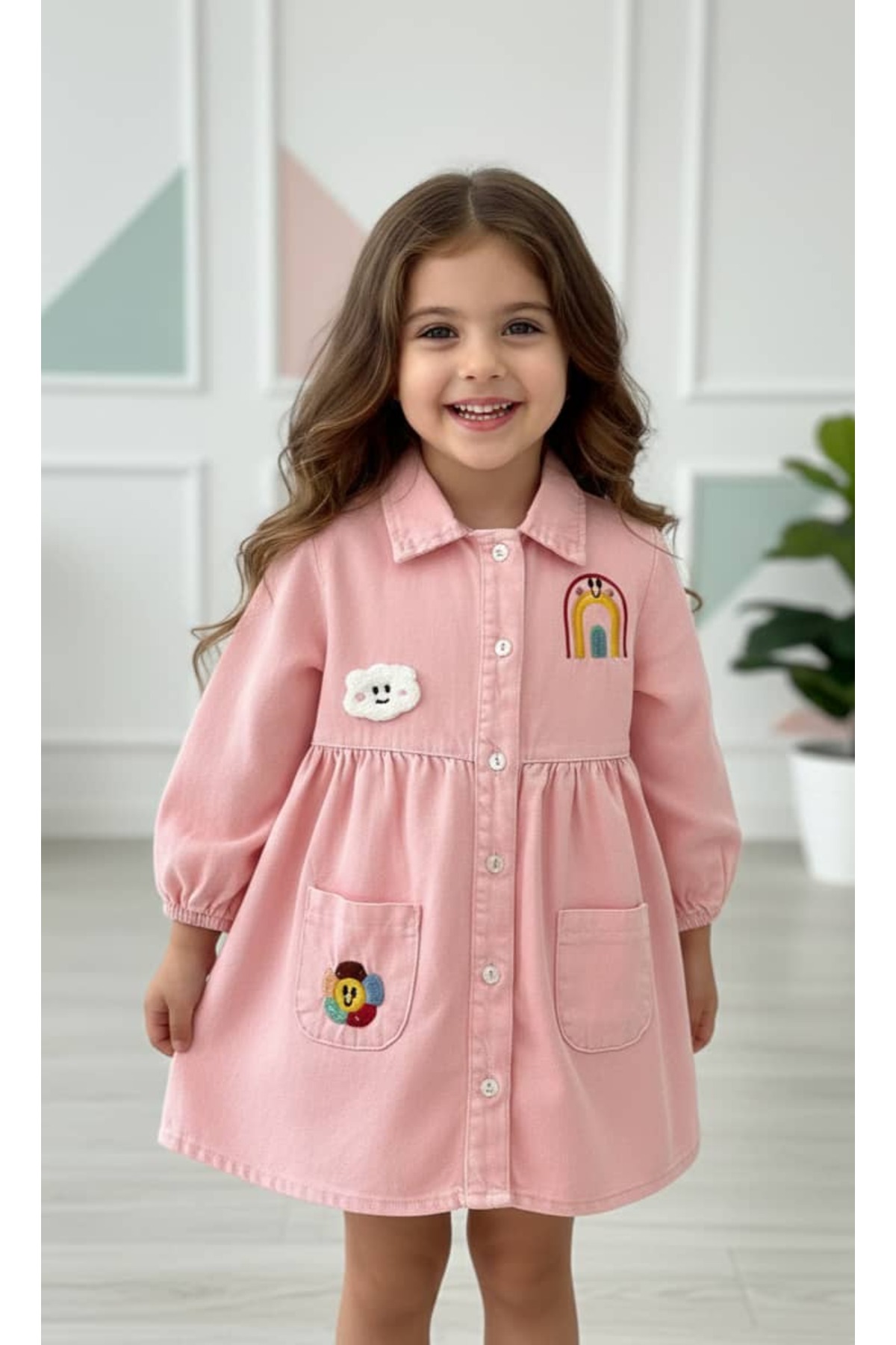 Elidabutik Bulut figür düğmeli elbise