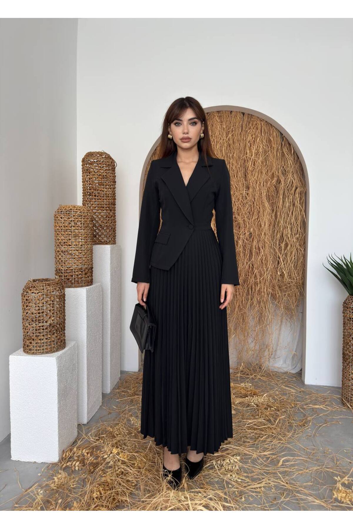 ETİKAFASHION Ceket Form Piliseli Elbise Özellikleri
