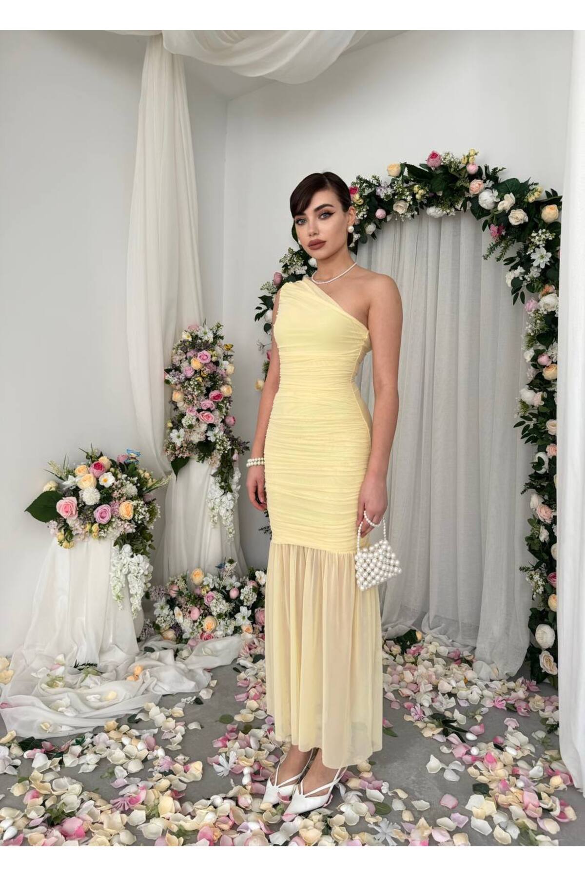 ETİKAFASHION Tek Omuz Drapeli Tül Elbise Özellikleri