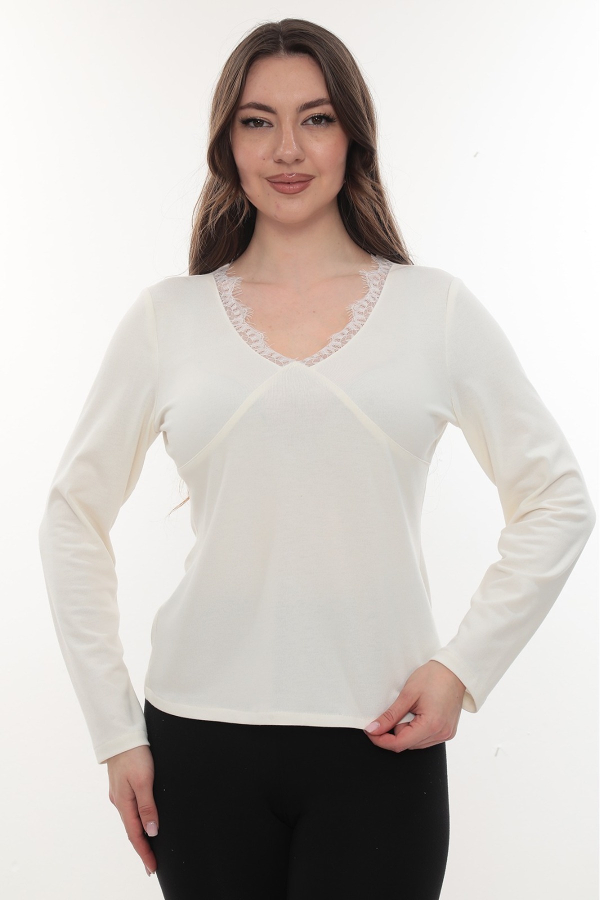 etselements V Yaka Dantel Detaylı Örme Bluz