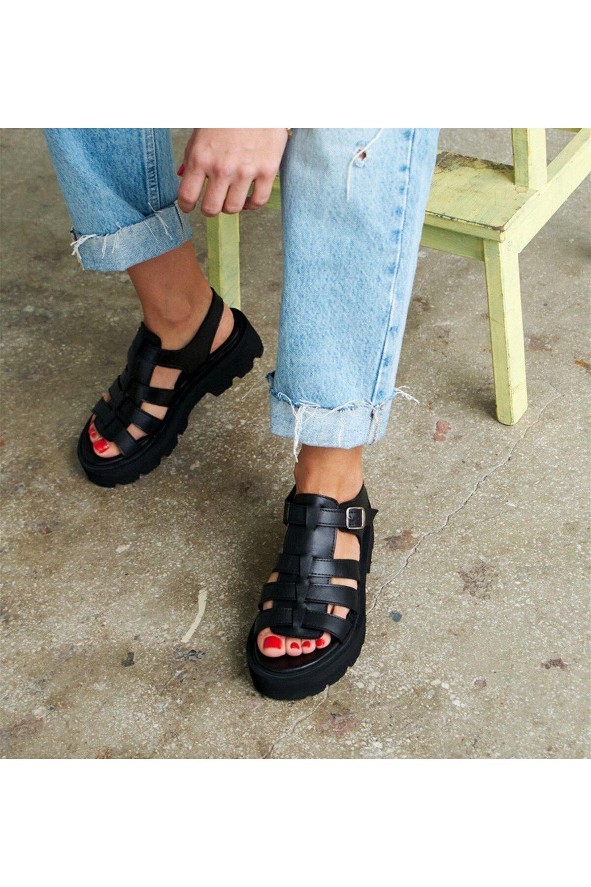 EVAURA Kadın Deri Kalın Taban Sandalet