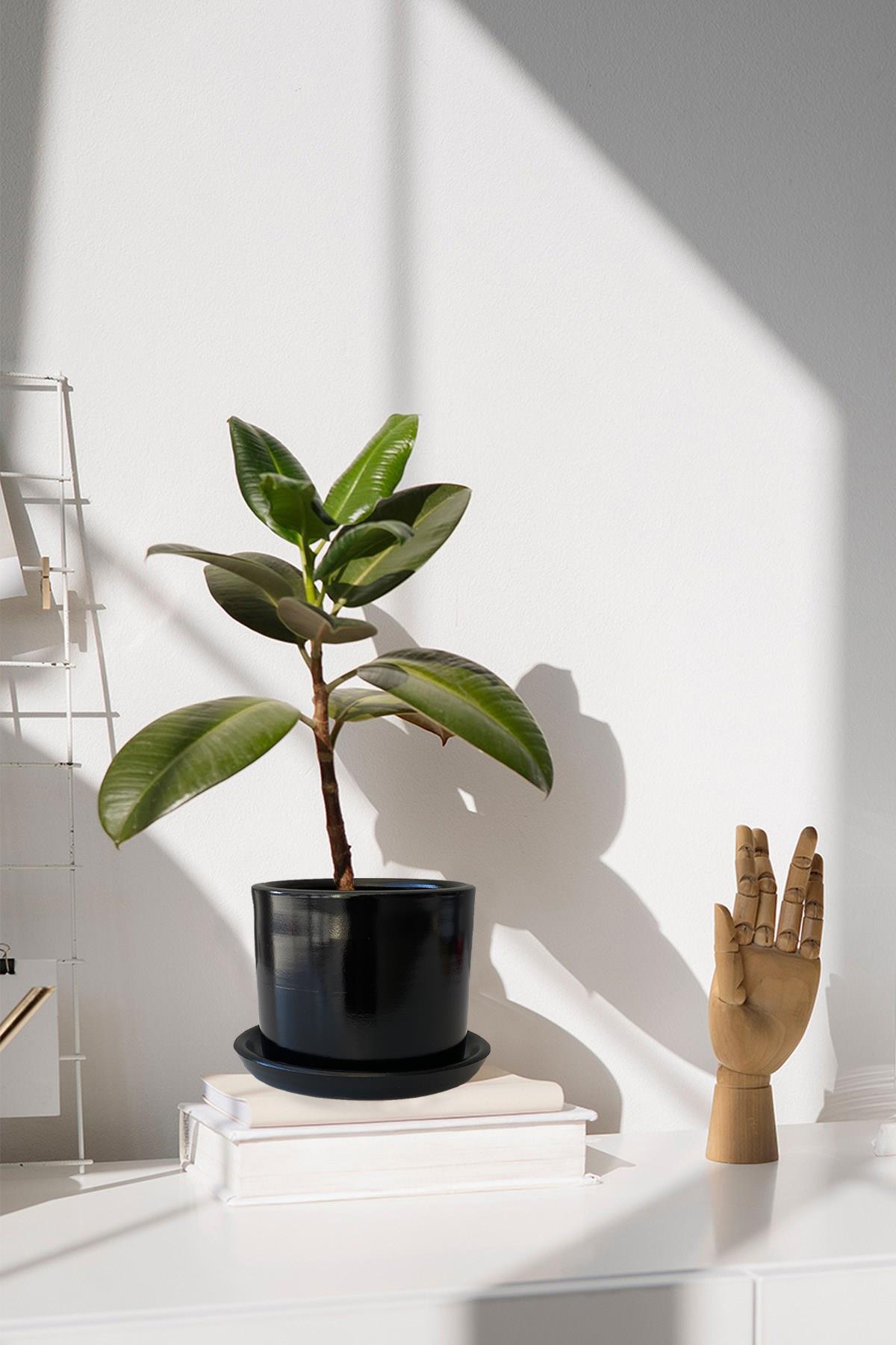 Evdek Tabaklı Siyah Silindir Çömlek Saksı 20x18 Cm Özellikleri