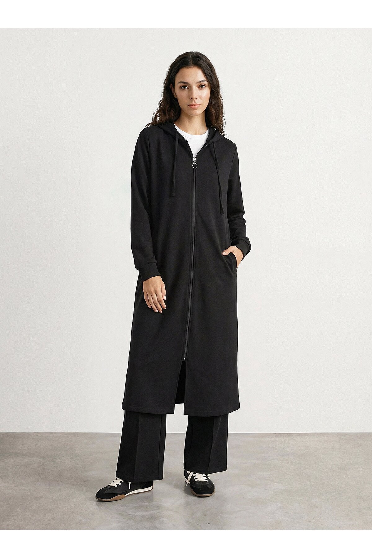 Everyday Basic Fermuarlı Kapüşonlu Uzun Spor Kap - Siyah - Refka Basic Özellikleri