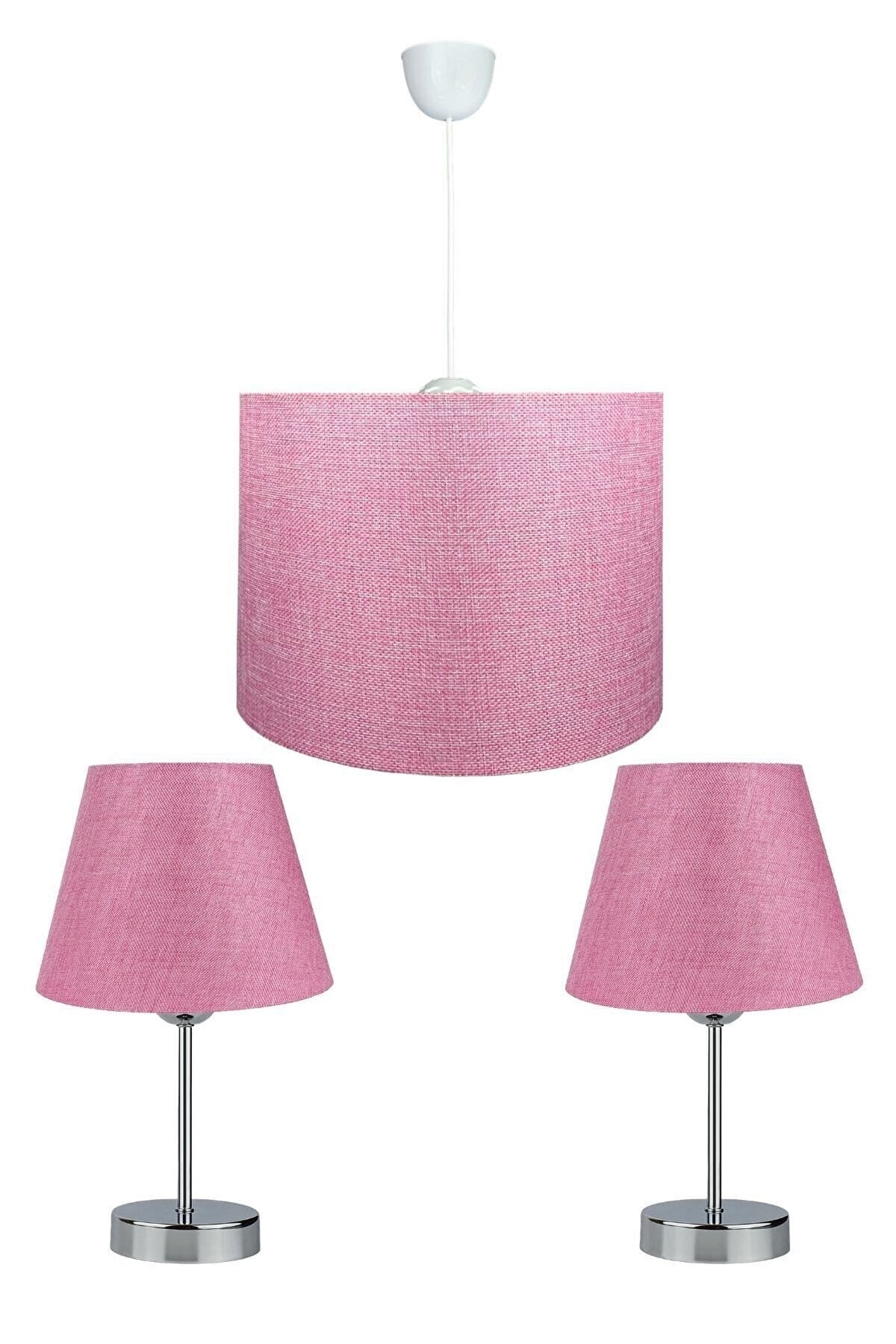EvLight Erkilet Pembe Üçlü Abajur Avize Seti