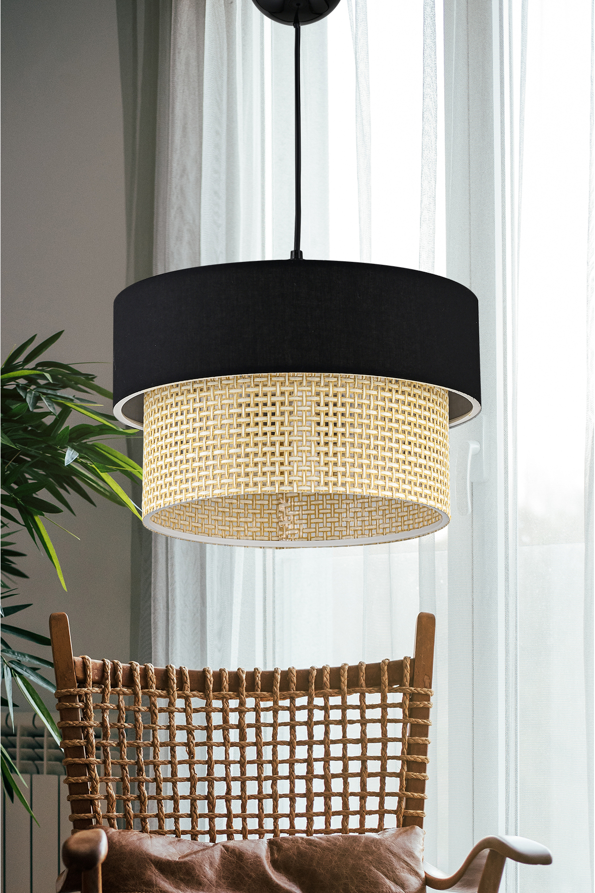 EvLight Hazeran Rattan 2 Katlı Sarkıt Avize Siyah