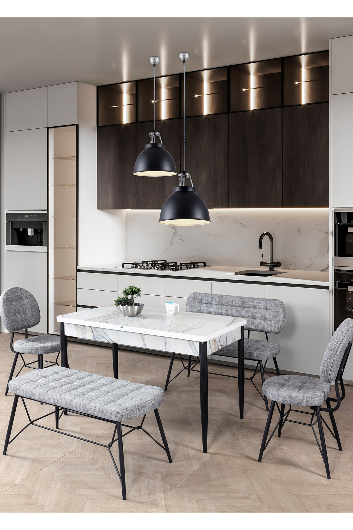 Eymense Peru Mutfak Masa Bench Takımı