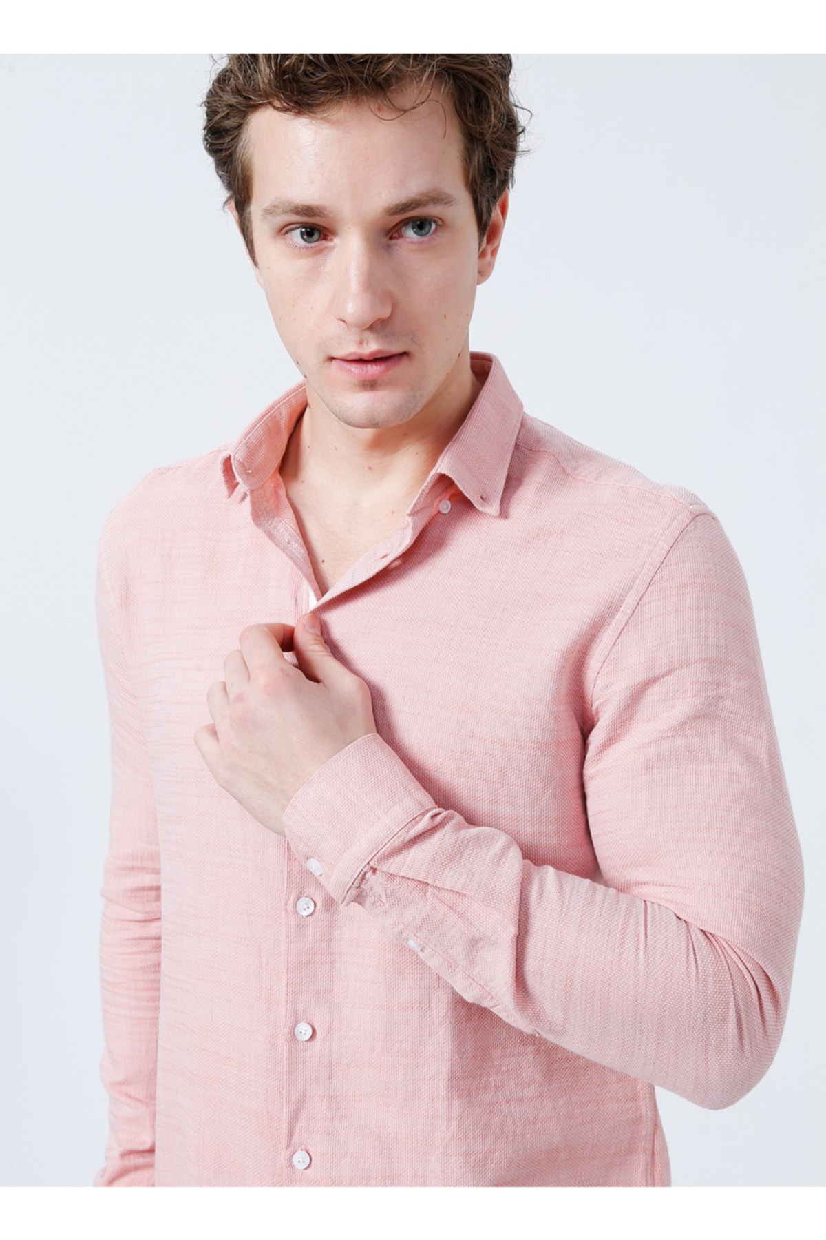 Fabrika Düğmeli Basic Düz Somon Erkek Gömlek - Non-kar Özellikleri