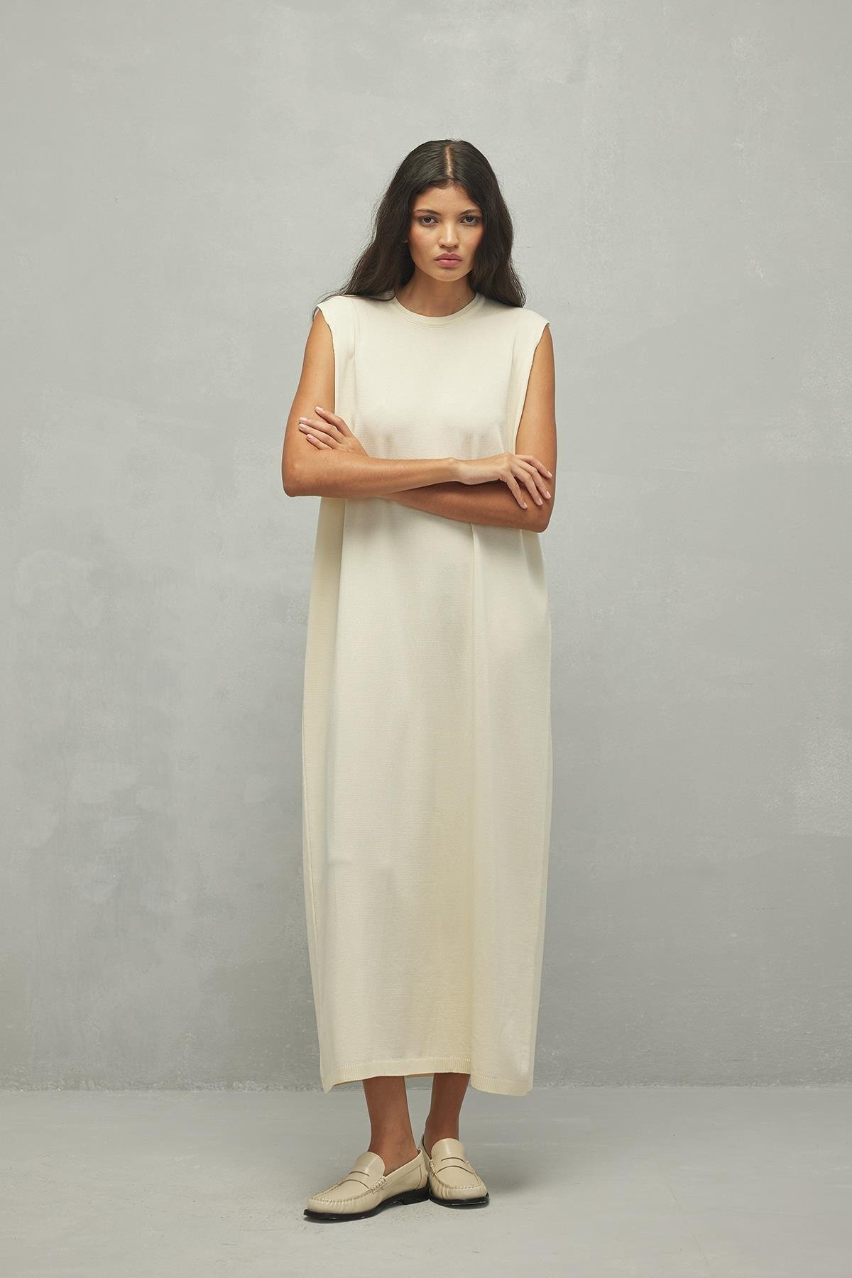 Fahhar Merserize Maxi Elbise Ekru