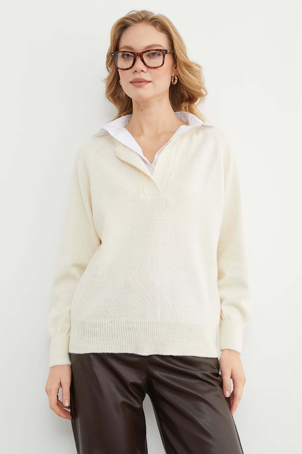 Fullamoda Basic Gömlek Yaka Triko Kazak