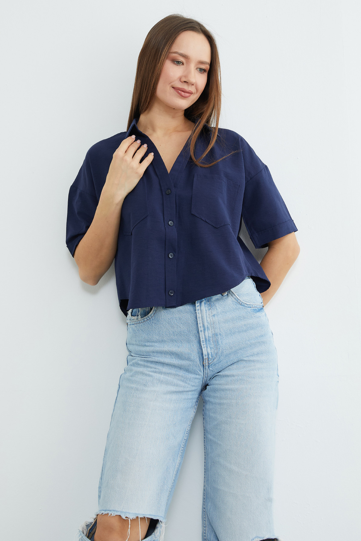 Fullamoda Çift Cepli Oversize Crop Gömlek