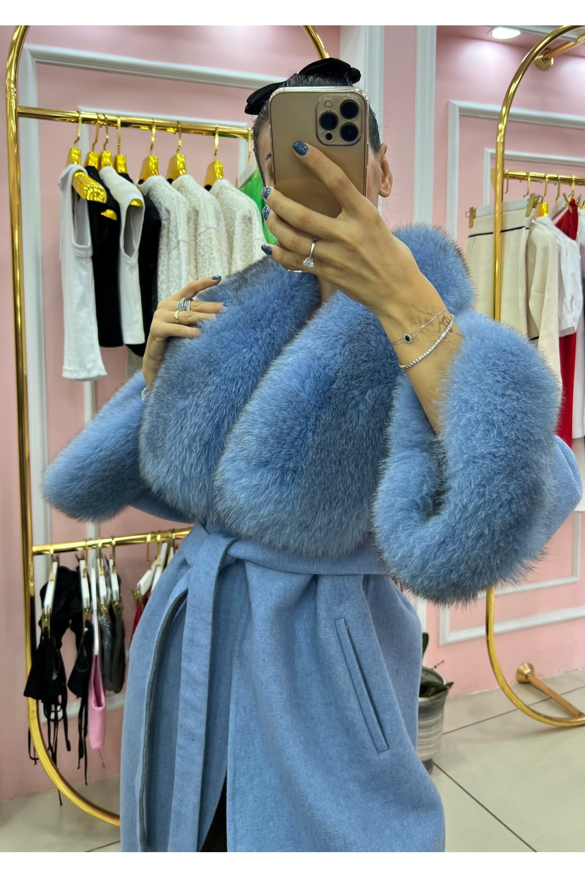 GamzeButik Mavi Kürk