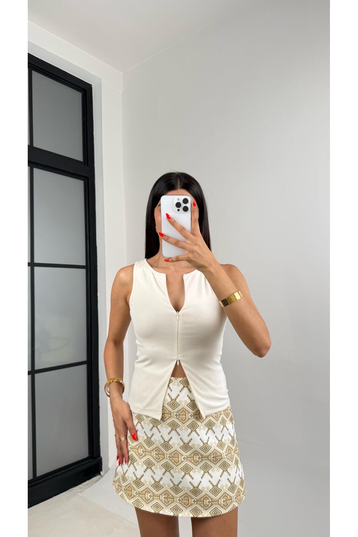 Gaus Taş Sıfır Kol Çift Fermuarlı Basic Bluz GAUS-0059 Özellikleri