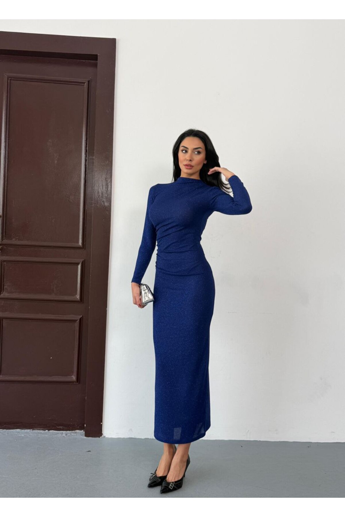 Genel Markalar Simli Drape Detay Elbise