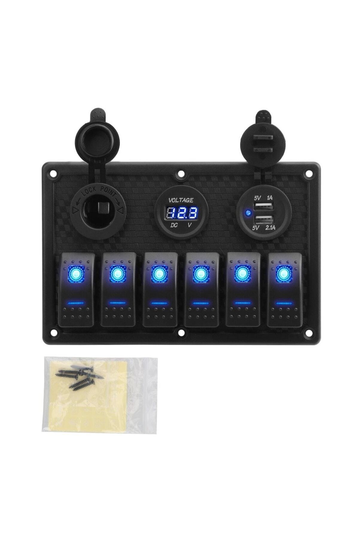 Genel Markalar Switch Panel 6lı Usb Çakmak Voltmetre 12-24v