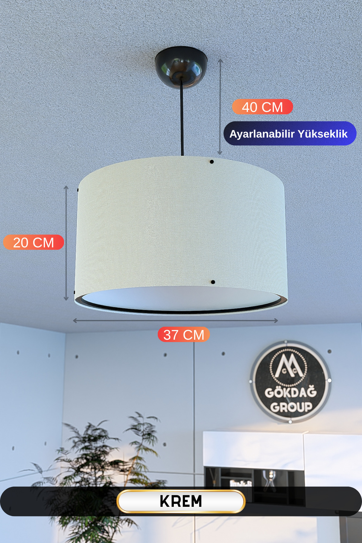 GÖKDAĞ GROUP Krem Kumaş Başlıklı Sarkıt Avize 37 CM Mega Boy Özellikleri