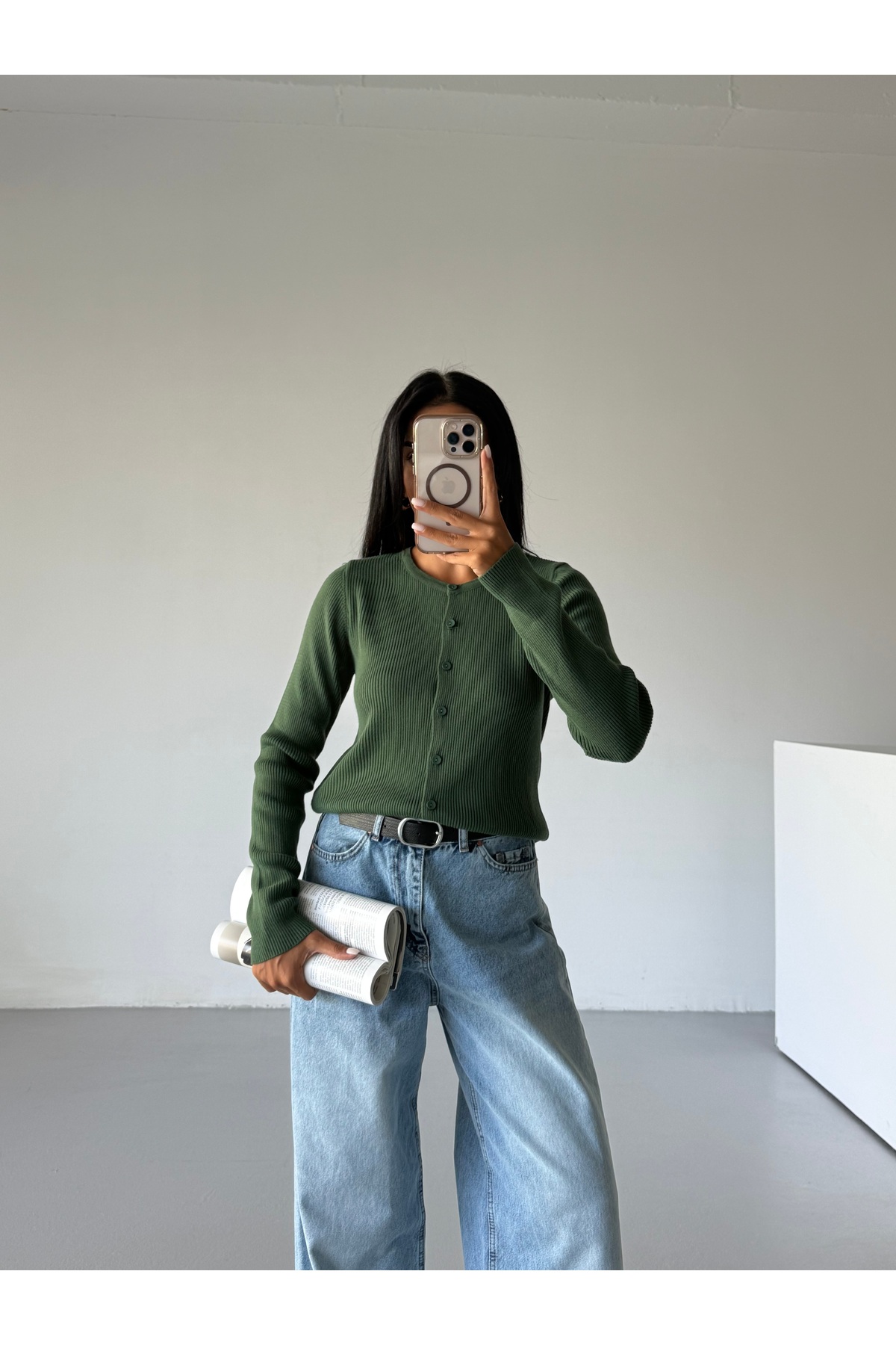 Gülçin Coşkun Düğmeli Uzun Kollu Basic Kadın Triko Hırka