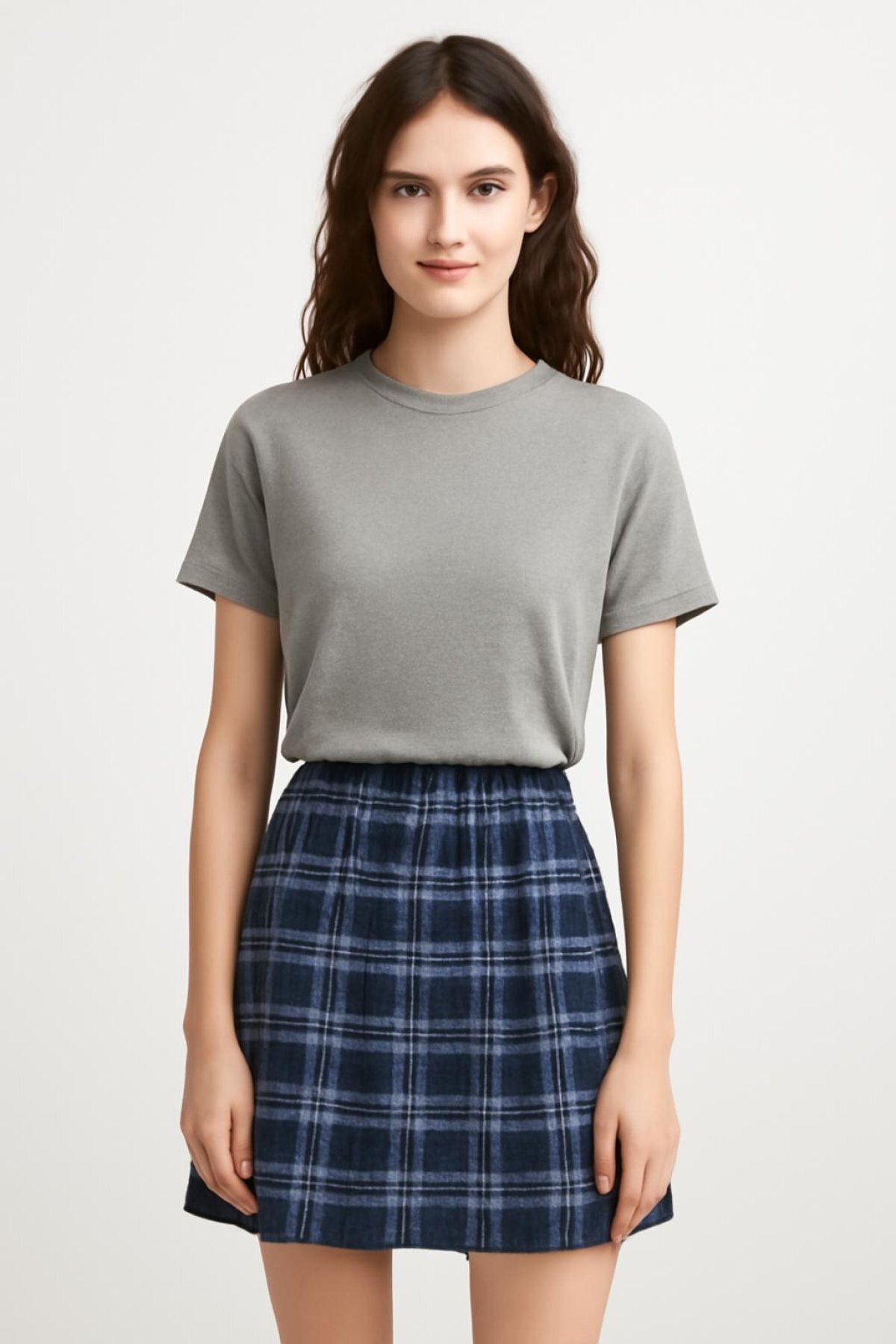 HAKKE Ekose Desenli Piliseli Mini Basic Etek Elbise