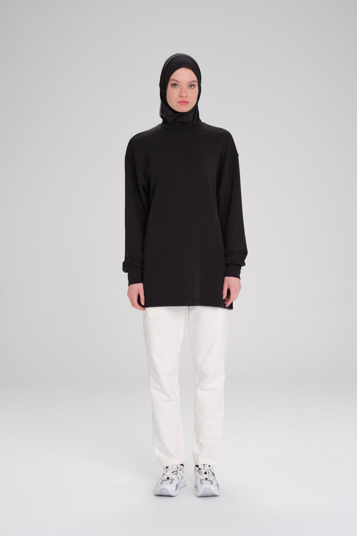 Haşema Yumuşak Dokulu Oversize Siyah Basic Günlük Sweatshirt ACT-14