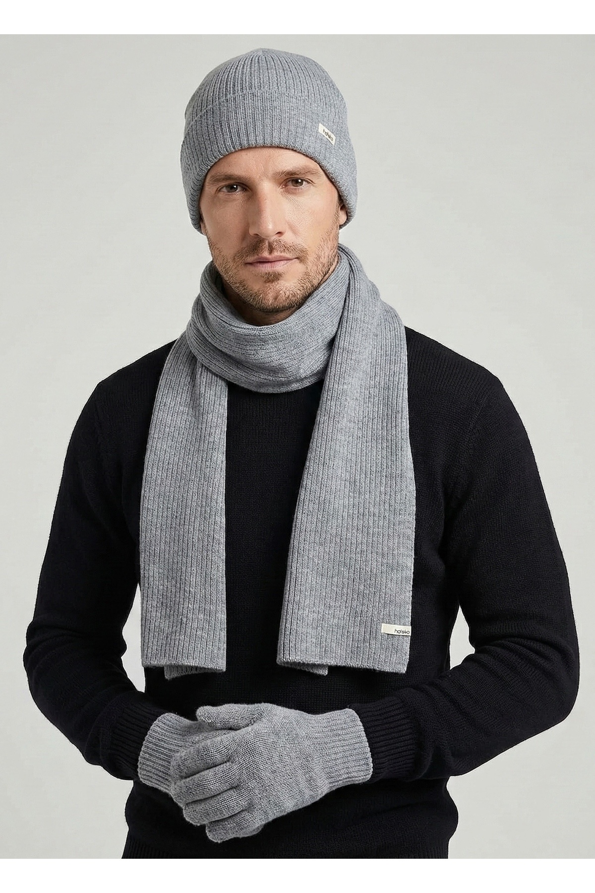 Hateko Açık Gri Kaşkol Bere Eldiven Hediye Seti - Atkı & Bere & Eldiven Set