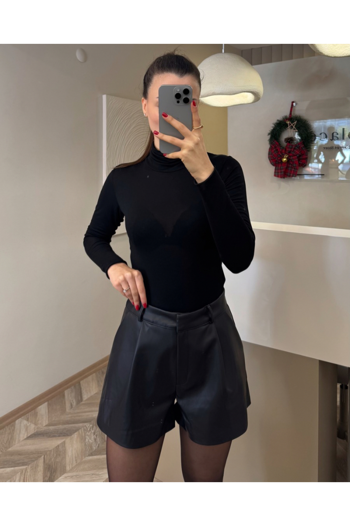 her place Deri Pileli siyah Şort Özellikleri