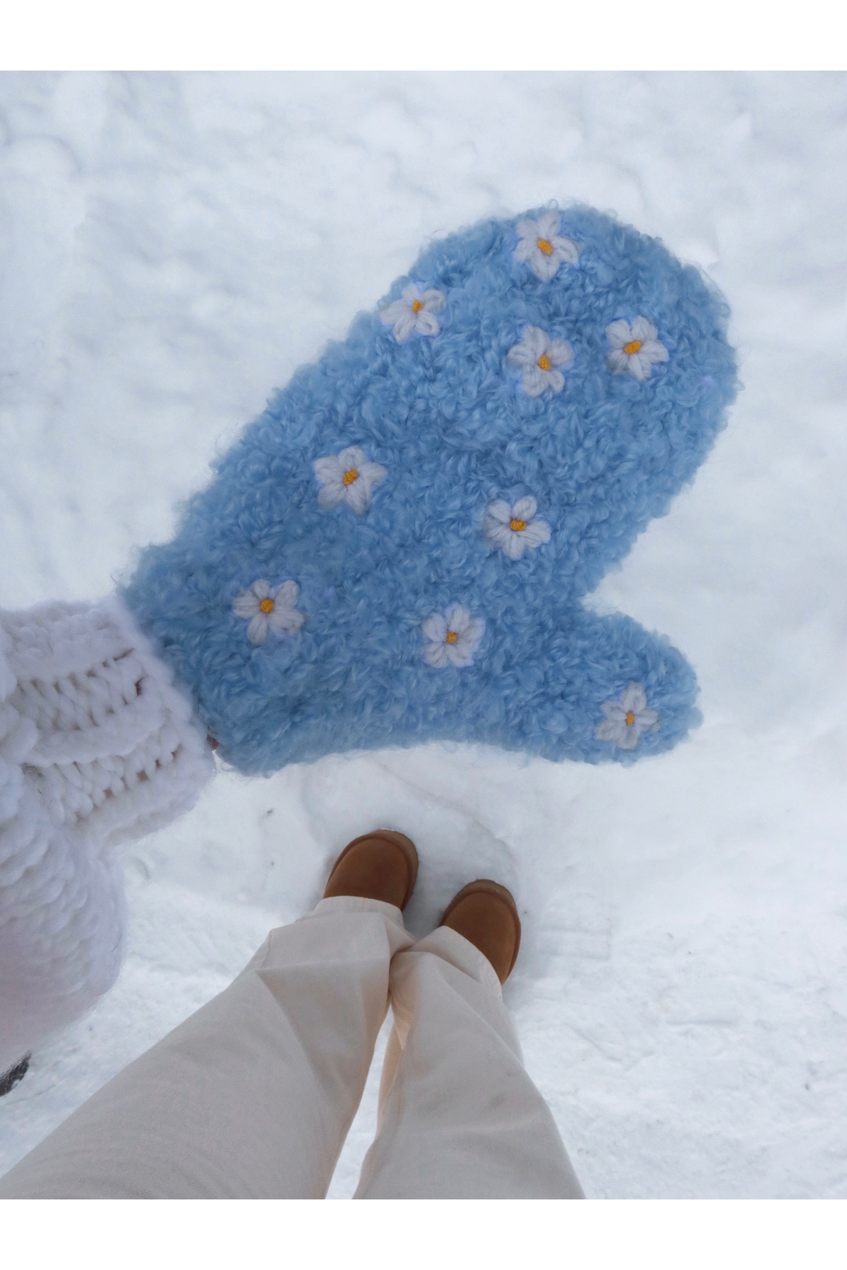 HEYAYS Çiçekli El Örgüsü Mavi Eldiven
