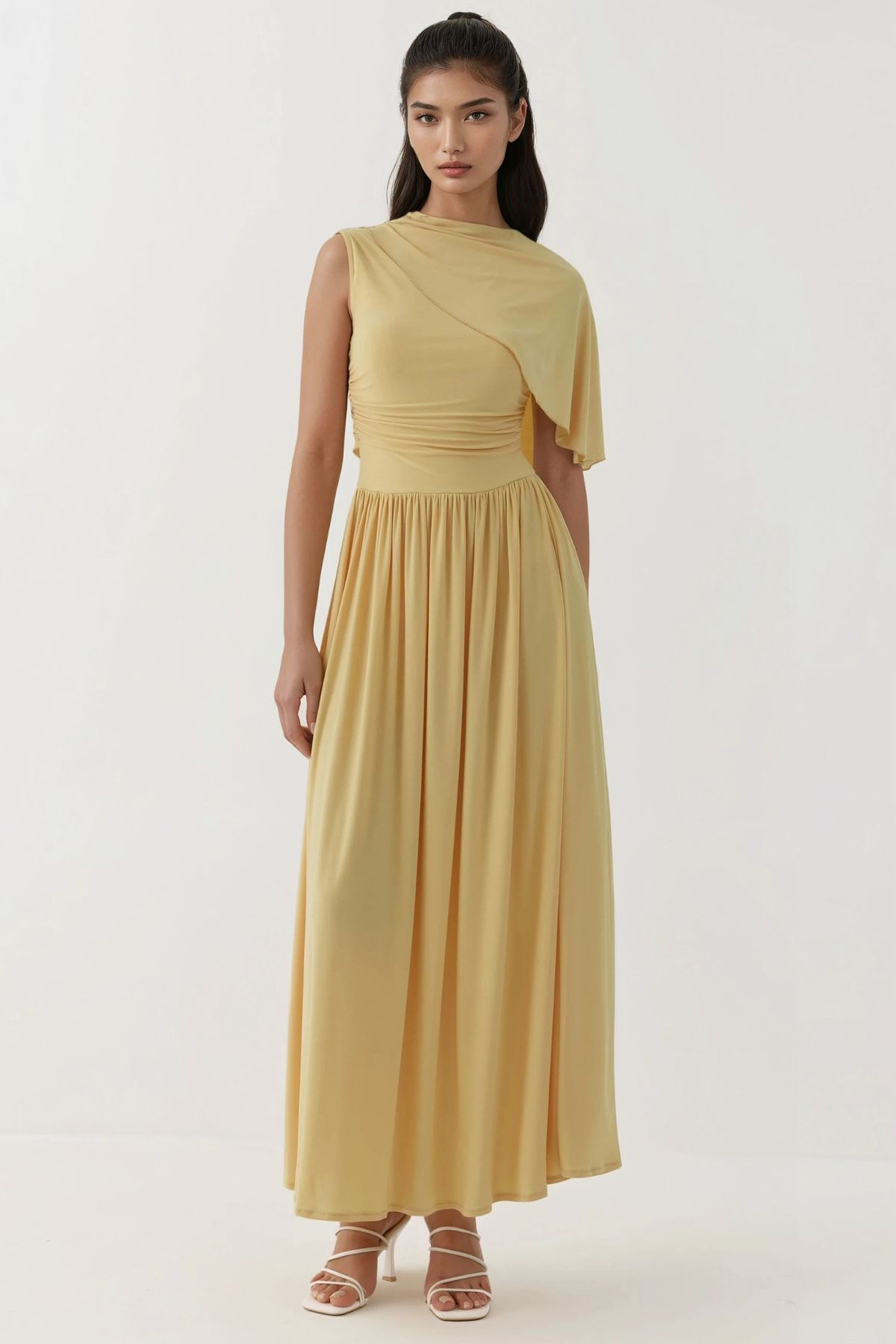 Hiccup Asimetrik Yaka Drapeli Premium Sandy Örme Maxi Elbise Özellikleri