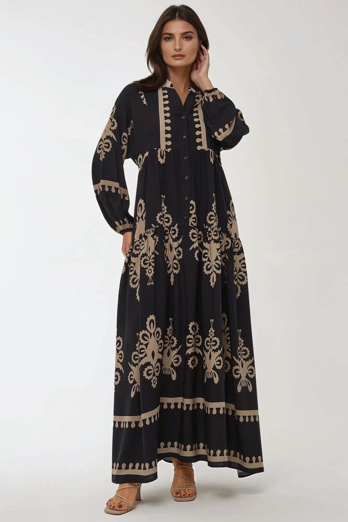 Hiccup Baskılı Uzun Kol Viskon Modest Elbise