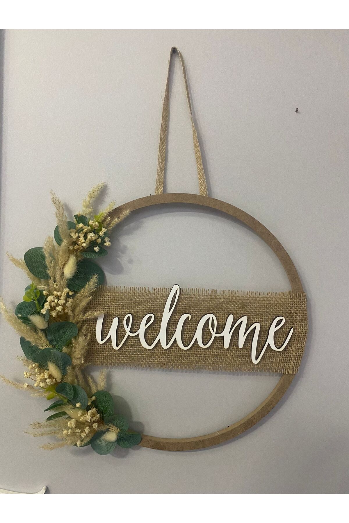 HOBİ55 Kapı Süsü Ahşap Welcome Kasnak