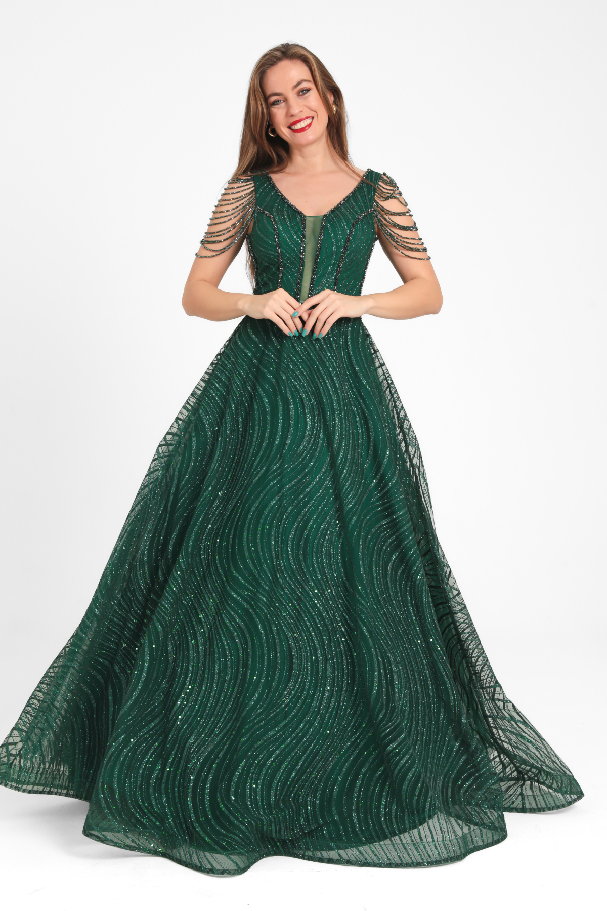 Hüseyin Baştürk Dalgasal Desenli İşlemeli Elbise Özellikleri