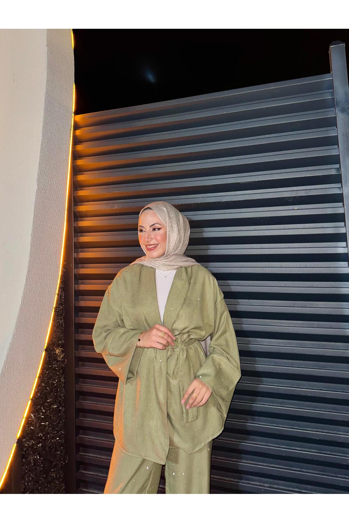 İlaydaalgül SALAŞ OVERSİZE KEMERLİ TAŞLI PULLU İKİLİ TAKIM