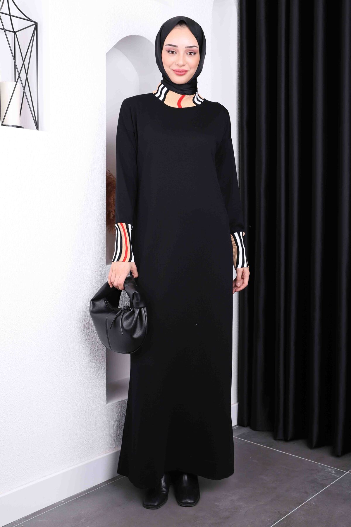 İmajButik Siyah Dik Yaka Merserize Triko Elbise Özellikleri