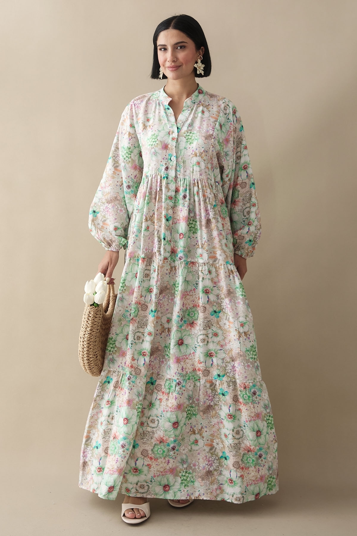 InStyle Nergis Çiçeği Yeşil Mango Elbise