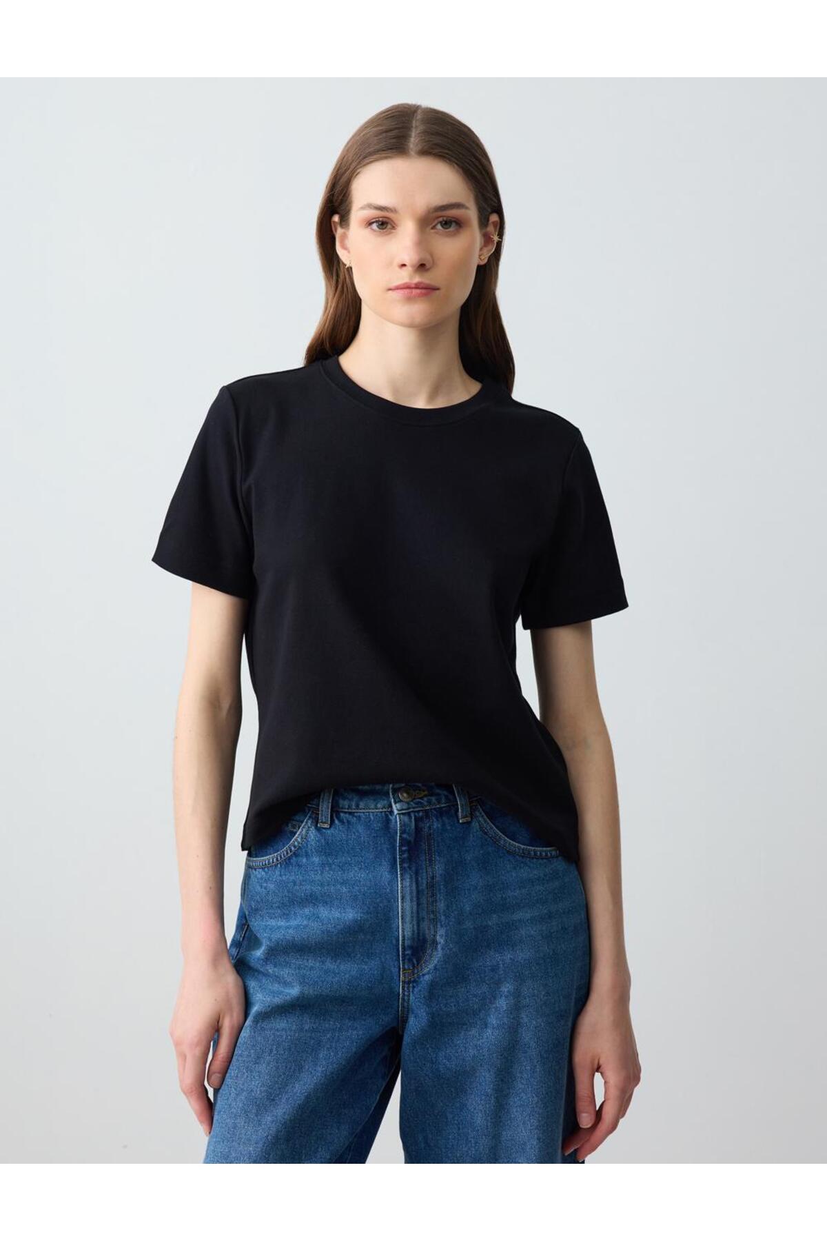 Jimmy Key Siyah %100 Pamuk Kısa Kollu Basic Örme Tişört