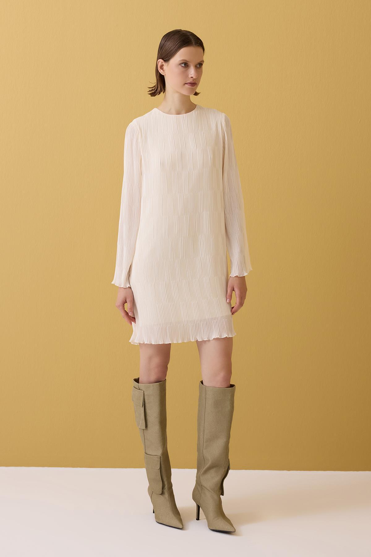 Jus De Pommes KREM PİLİSELİ MİNİ ELBİSE