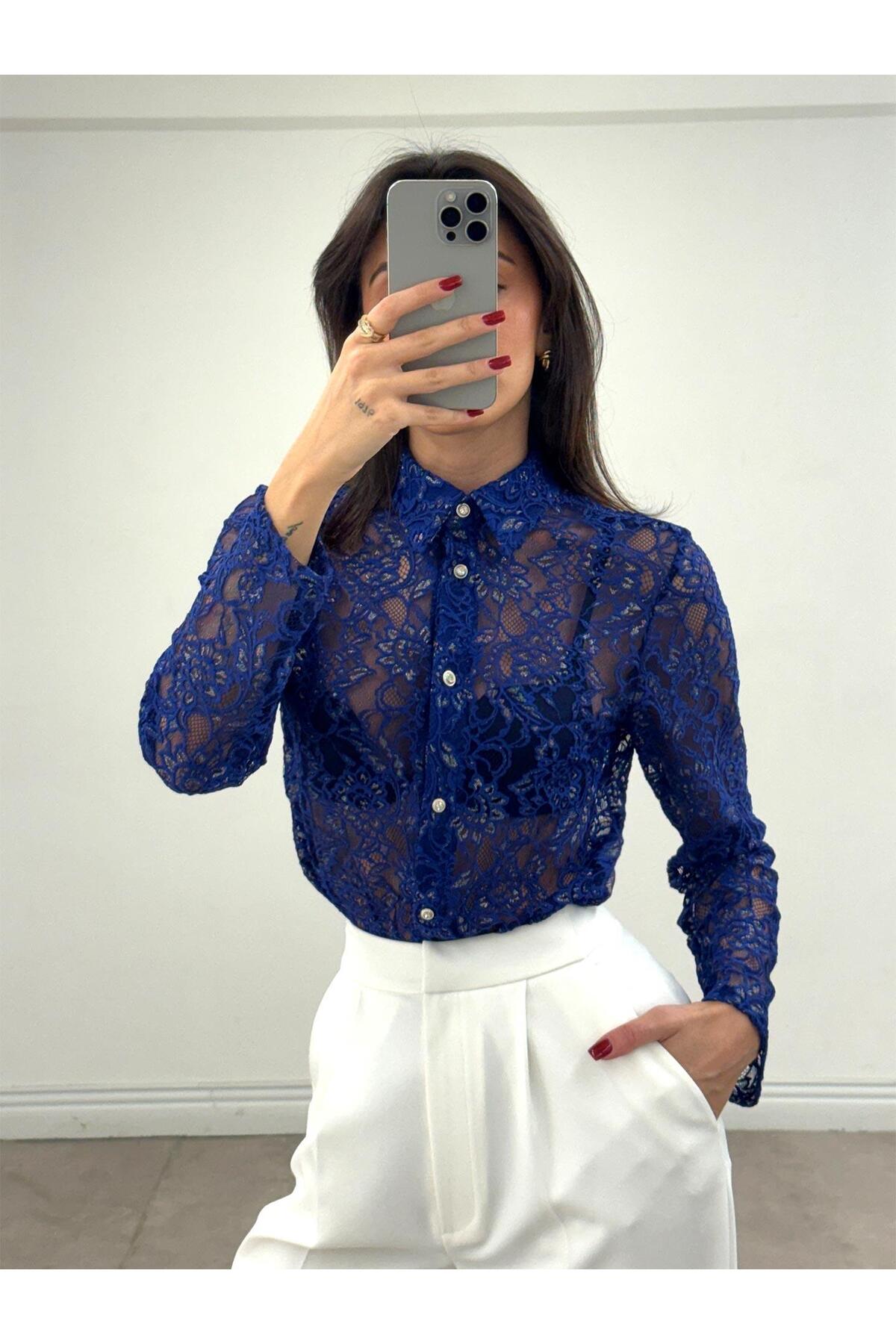 Juste Varaklı Dantel Gömlek Saks Özellikleri