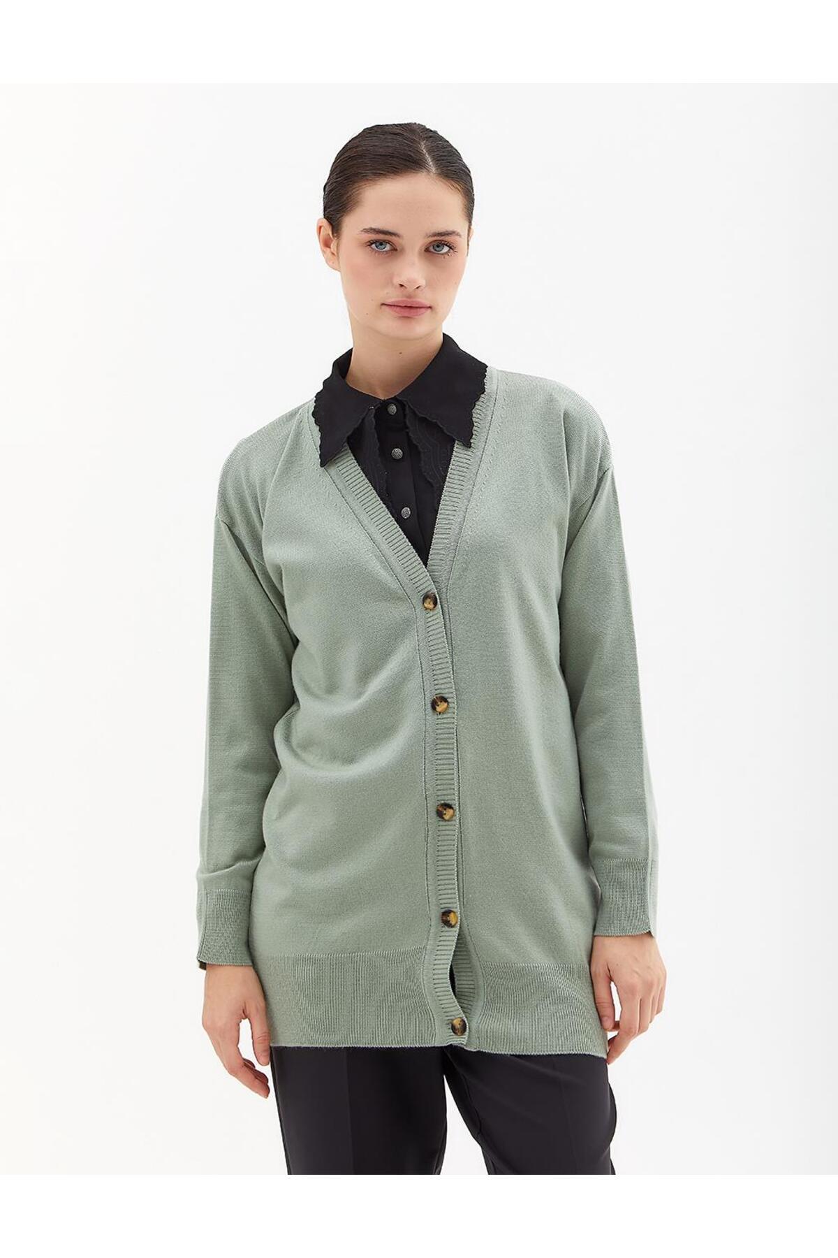 Kayra Basic Triko Hırka Yosun Yeşili