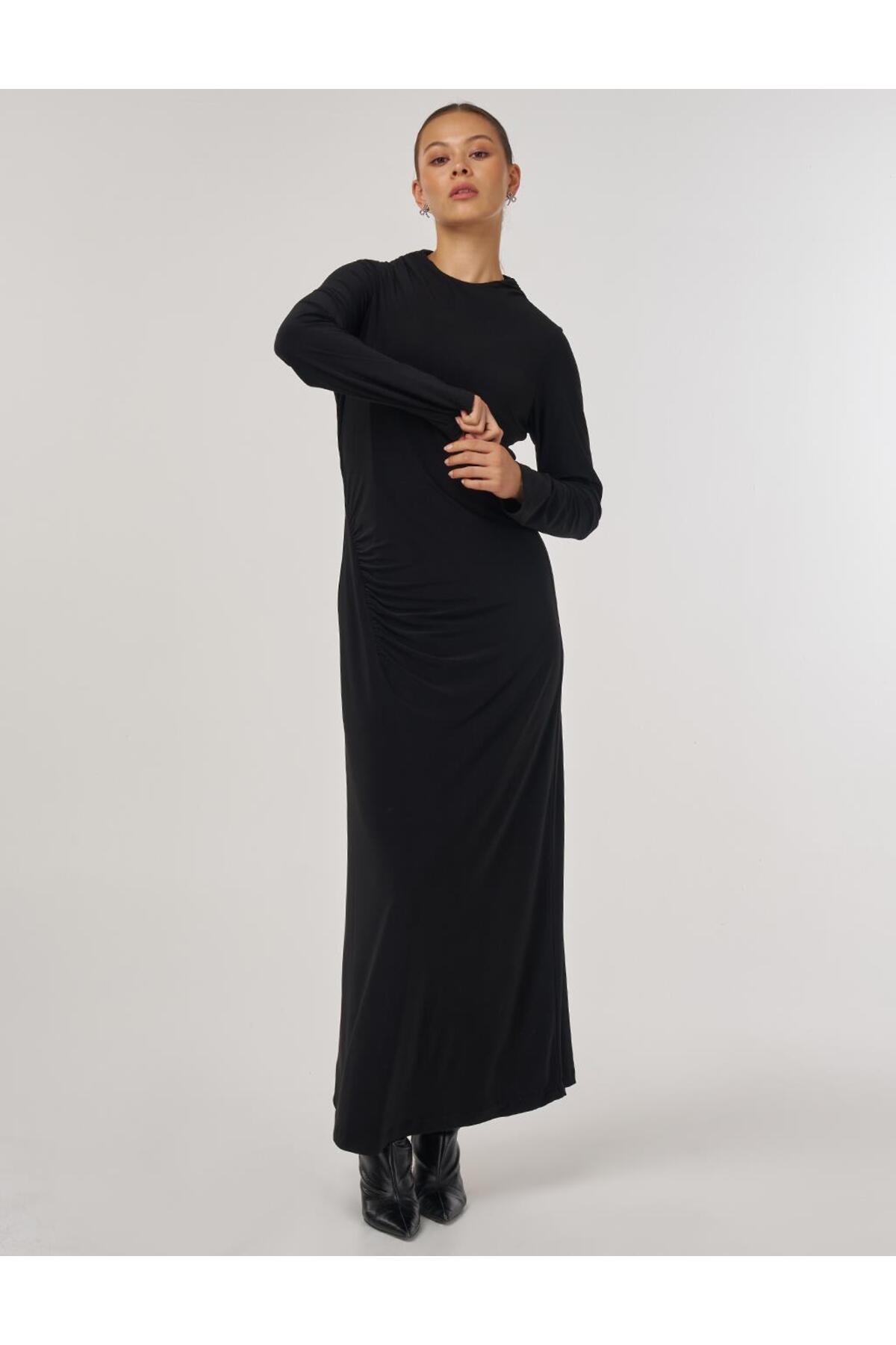 Kayra Bisiklet Yaka Drapeli Elbise Siyah Özellikleri