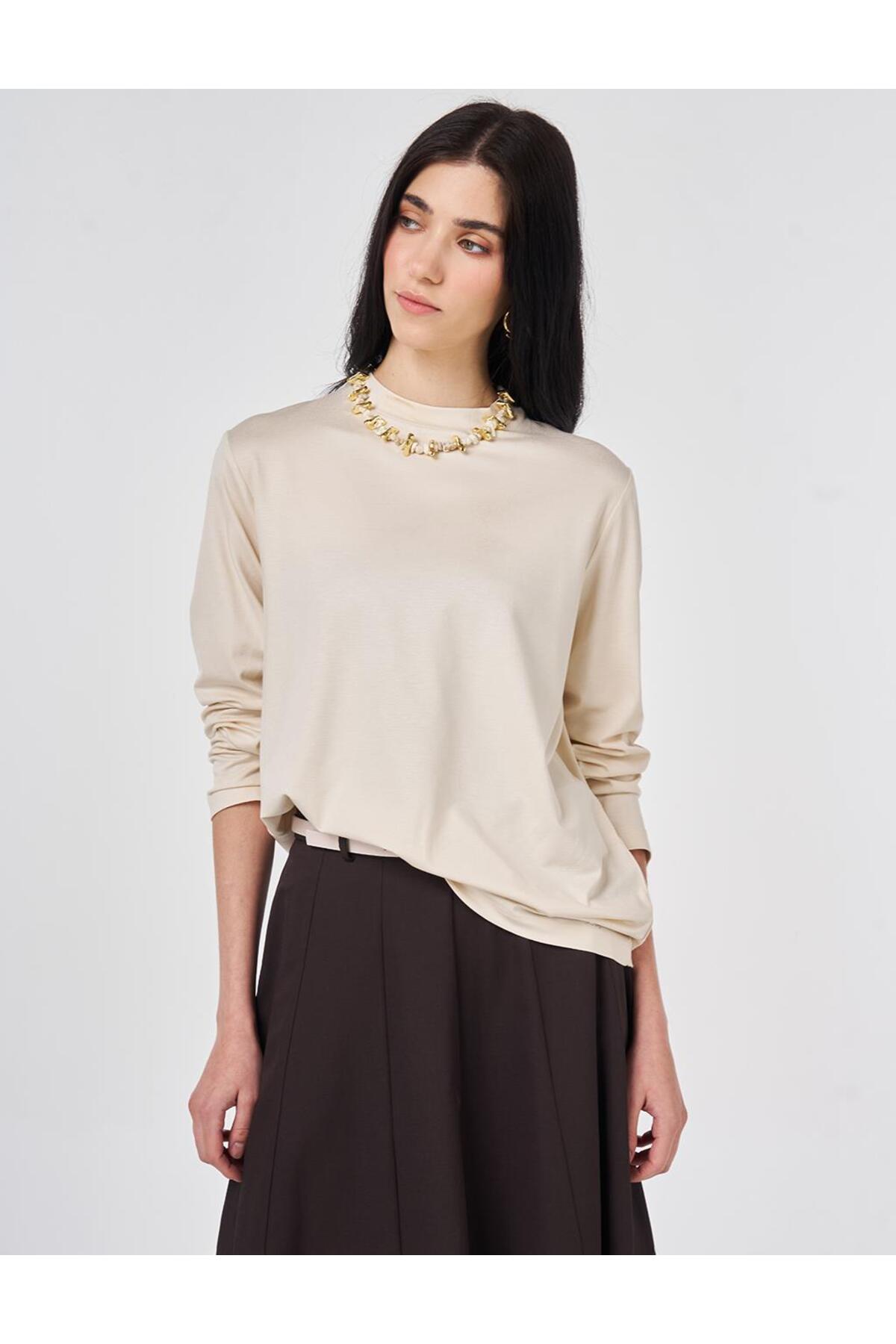 Kayra Dik Yaka Örme Bluz Krem Özellikleri