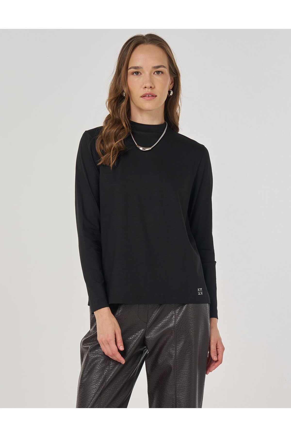 Kayra Sıfır Yaka Basic Viskon Bluz Siyah