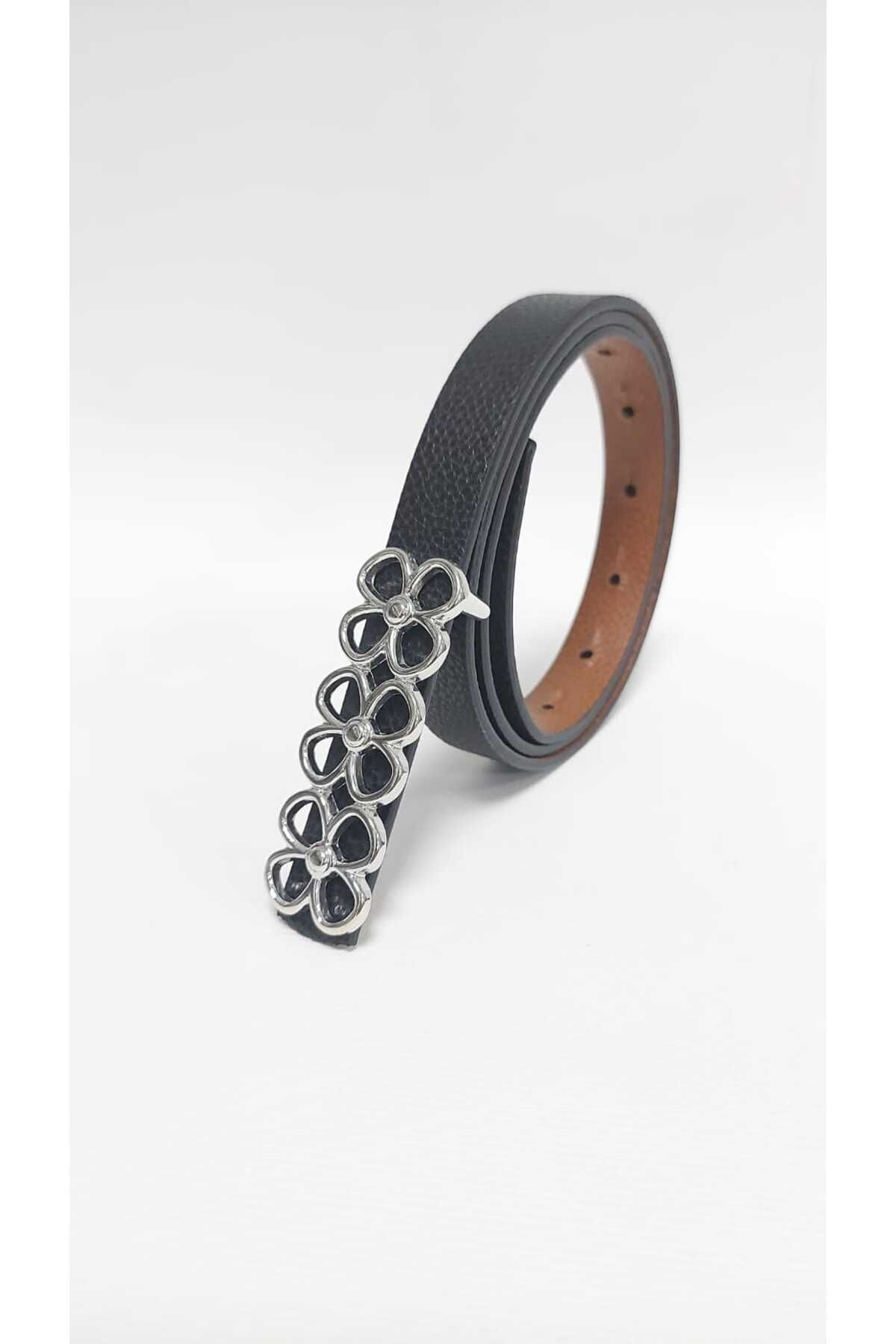 Kemerix Kadın Çift Yönlü Gümüş Tokalı İnce Kemer