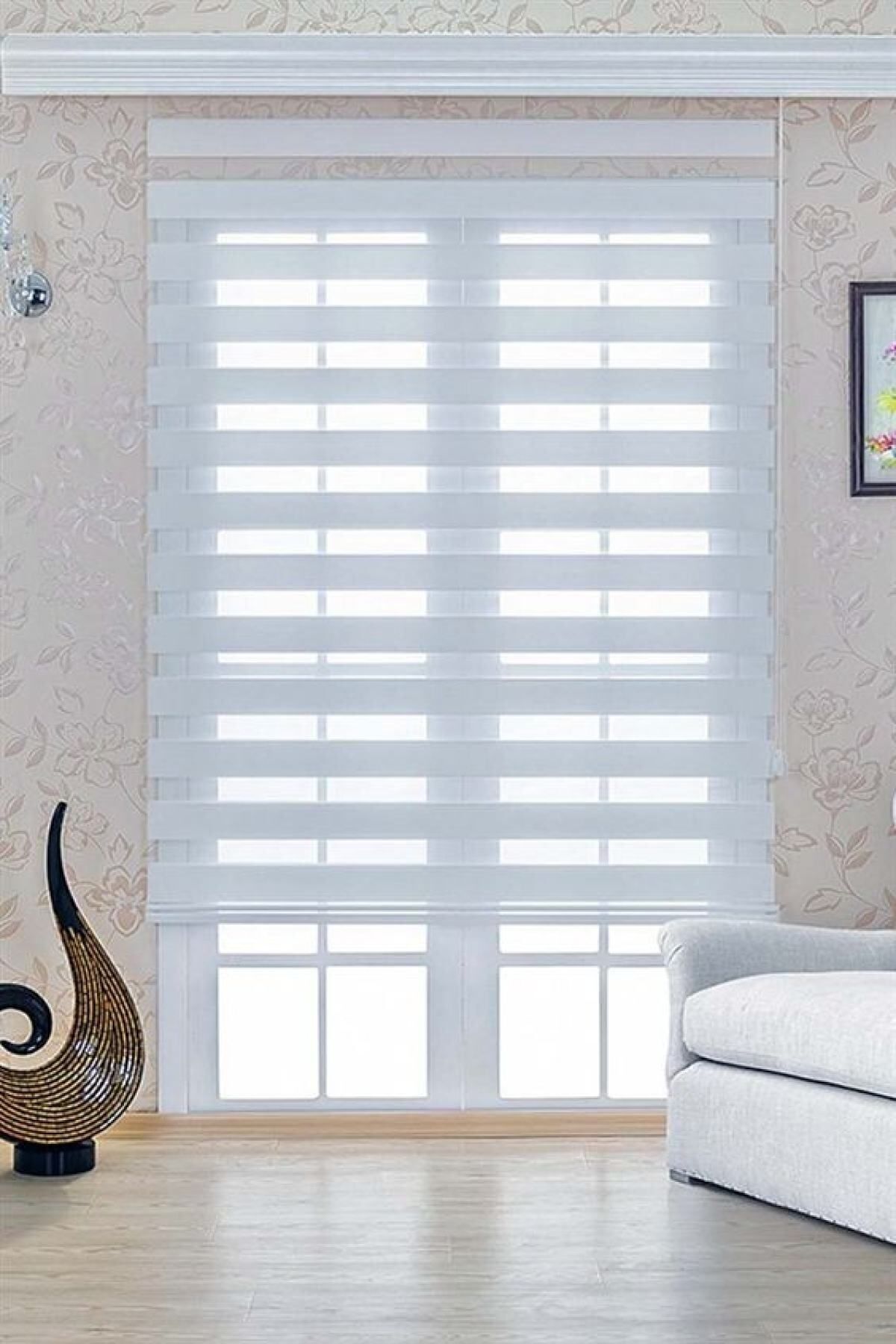 Kidmex Beyaz Alüminyum Kasa Zebra Perde Eteksiz