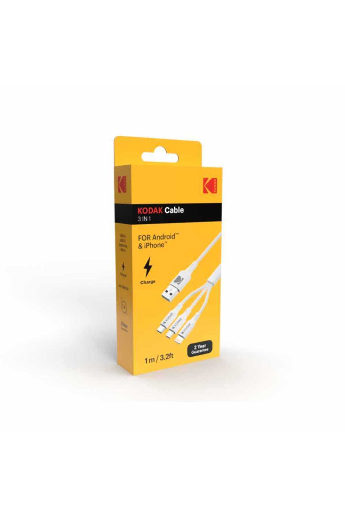 Kodak 3-in-1 Şarj & Data Kablosu – Android / iPhone / Micro USB ⚡📱 Özellikleri