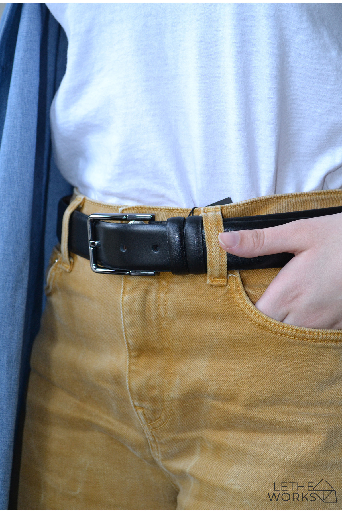 lethe works %100 gerçek deri kemer siyah basic kemer