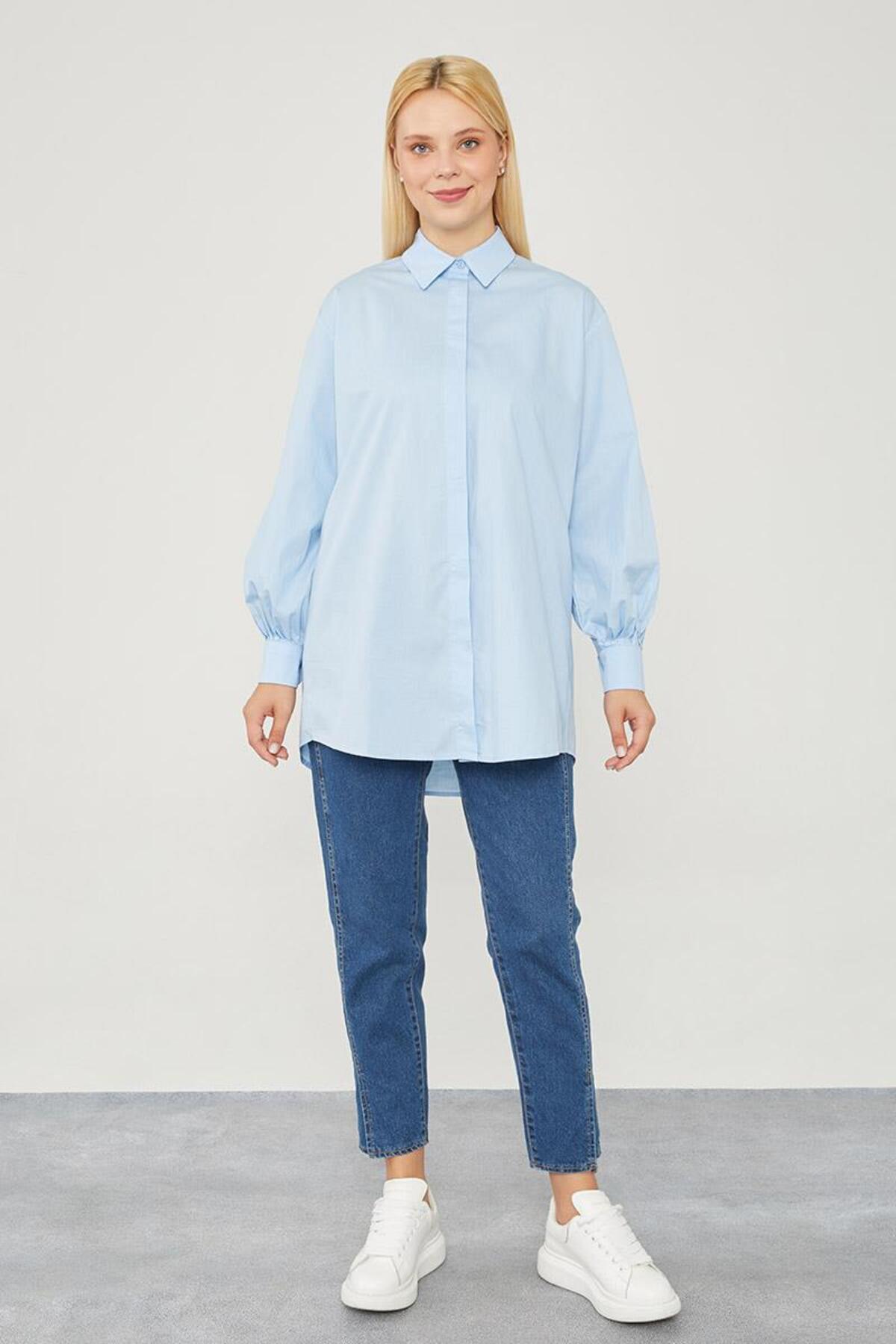 Levidor Mavi Oversize Balon Kol Poplin Gömlek Özellikleri