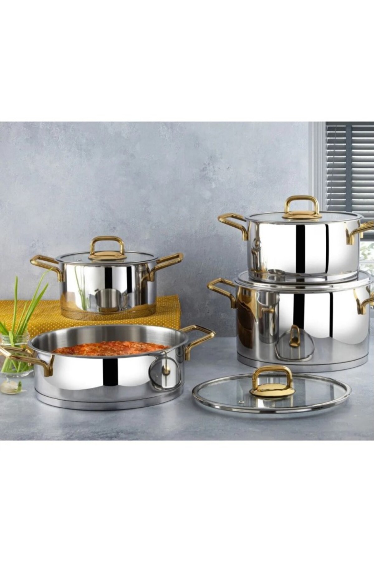 Lines Silver Çelik Tencere Seti 8 Parça Altın Kulp Özellikleri