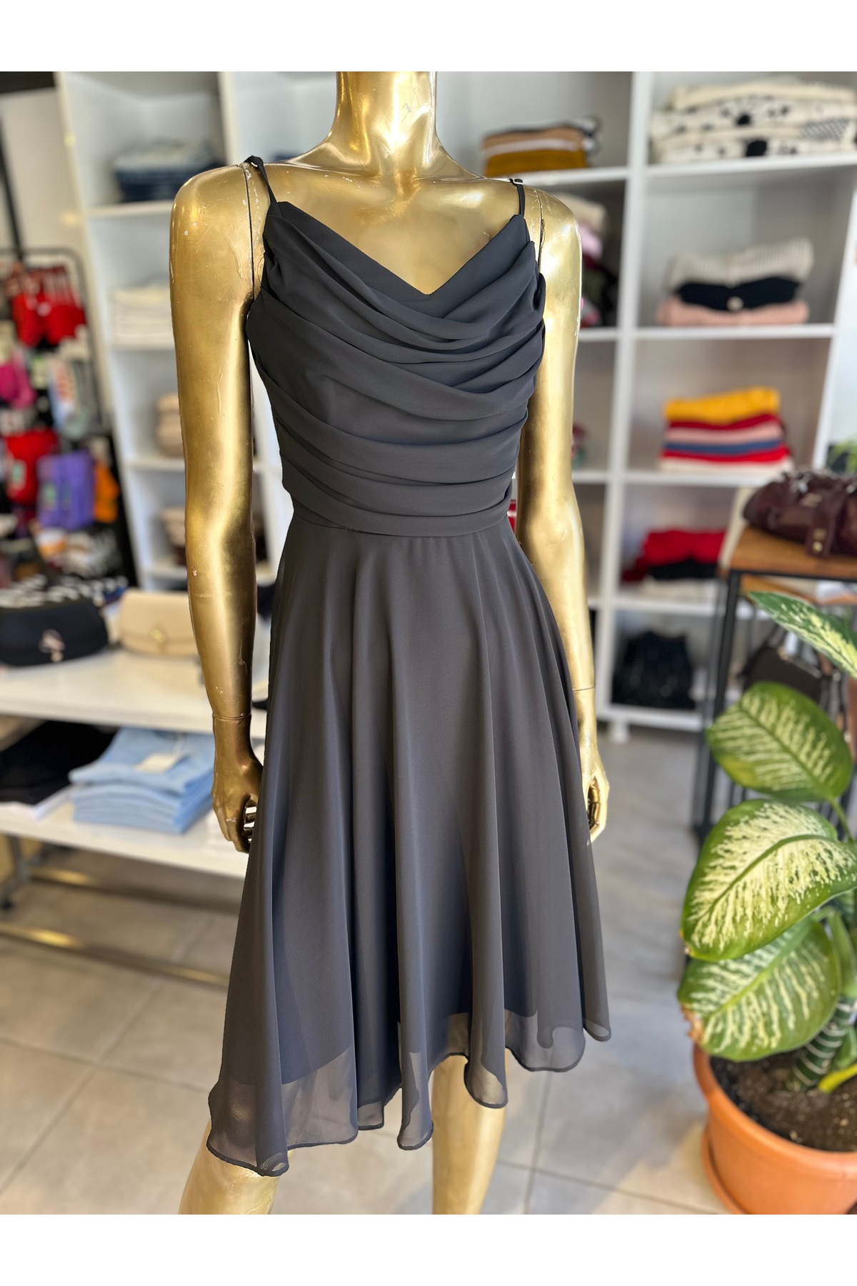 MACHEK Siyah Şifon Elbise